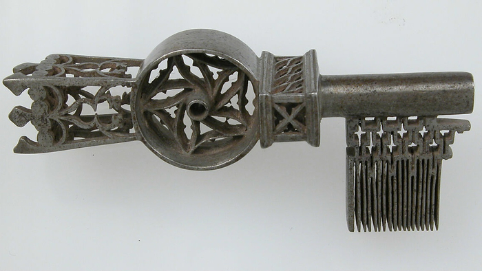 Декор готических железных замков и ключей часто отличался изысканностью и высочайшим качеством исполнения. Мотивы воспроизводили в миниатюре сложные узоры и крошечные статуэтки. Некоторые механизмы замков были скрыты от глаз, и для их открытия требовалось два или даже три ключа, используемых последовательно.