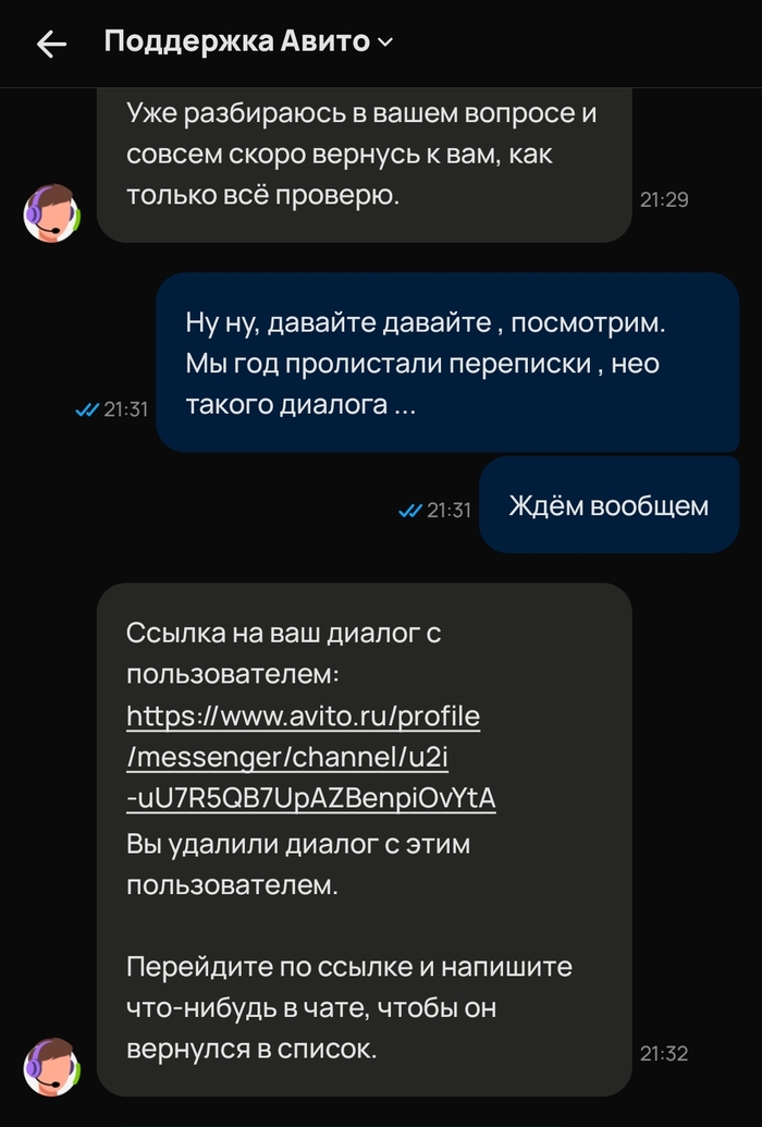 Мы ещё раз попытались объяснить , что да ладно якобы он так видит ситуацию, бог с ней... Но этап отзыв указан "сделка состоялась" и отзыв портит рейтинг , смените тогда уж хотя бы этап на ", общались" и тогда не будет ни за что порчи рейтинга. Нет. Увы. Бесполезно. Поддержке Авито плевать, никаких усилий не хватило доказать нам свою правоту.