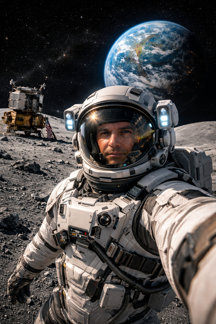 Смотрю на Землю. Там сейчас ночь, горят огни городов. Там миллиарды людей, интернет, новости, скандалы. А здесь — тишина, пыль и бесконечность.