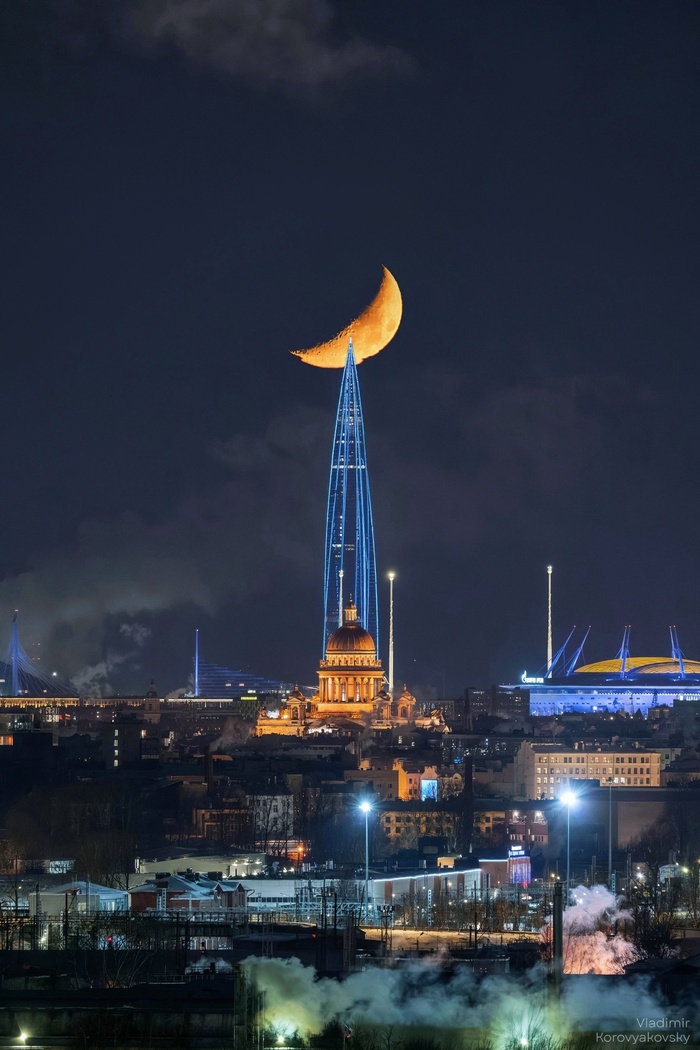 Заход Луны за Лахта-центром