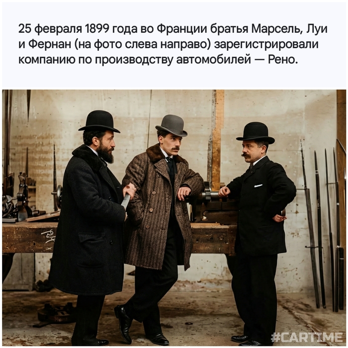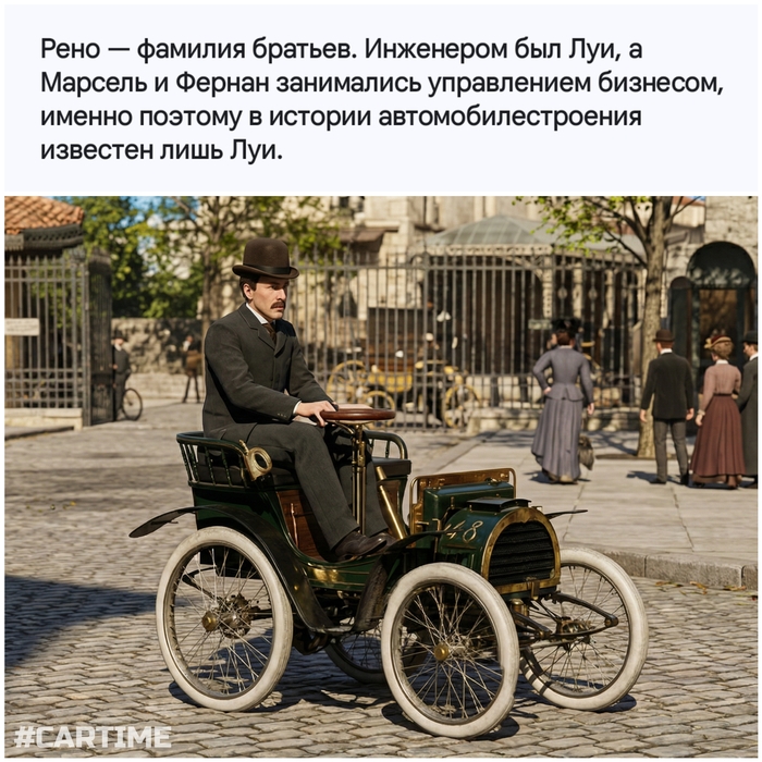 На дворе 1900 год, Луи и Марсель Рено выигрывают две важные гонки: «Париж-Бордо» и «Париж-Тулуза». После первой они получили заказ аж на 350 автомобилей.