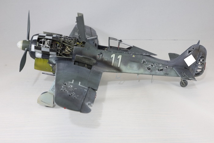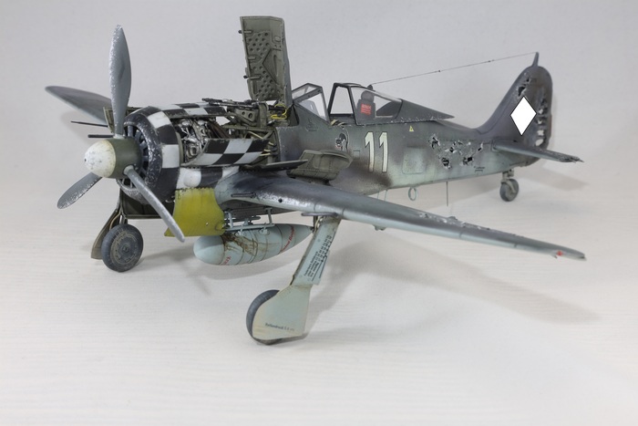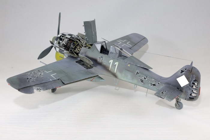 В процессе сборки так и не смог побороть декаль на правом крыле, она осталась "серебриться" чем её только не травил, а так очень доволен сборкой. Даже поковырял следами от осколков.