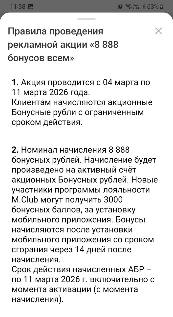 Задумалась я давеча о покупке планшета для своего досугового времяпрепровождения. Пал выбор у меня на магазин М-Видео (решила вживую ехать, шоб послушать, пощупать да определиться на месте). Но сначала, думаю, дай-ка зайду в приложение, полистаю, погляжу, что у них там есть в наличии. Захожу и глядь - а там у меня в ЛК аж целых 8888 подарочных баллов, которые нужно потратить до 11 марта. Красивое число в честь женского праздника. Засомневалась, подумалось, что система у них такая же, как в Шестерочке - 10 баллов = 1 рубль. Загуглила - ан-нет! 1 балл = 1 рубль! Ну, думаю, шикую! Указано, что этими баллами можно аж до 50% от суммы покупки оплатить, т.е. сумма покупки должна быть около 17500 - это половину планшета смогу баллами закрыть (планшет нужен был недорогой, чисто кино/музыка). Ну и погнала я в М-Видео! Думаю, вот у меня праздник сейчас будет - планшет за полцены! Аттракцион невиданной щедрости! Приехала, походила, выбрала то, что нужно. И на кассе мне уважаемый консультант заявляет, оформляя покупку (стоимость планшета 15 т.р.), что может списать... барабанная дробь! аж целых 705 баллов!!! Вот это дааа! Вот это от души душевно в душу. Подарок так подарок! Как оказалось, эти 8888 баллов можно списать в зависимости от товара - где-то можно всё списать, где-то нет. Я уже не стала уточнять, на какие товары это распространяется, в силу своего впечатленного состояния. Красивая замануха, да, М-Видео? Особенно для женщины на 8 марта! Красавцы! 💪🏻👏🏻