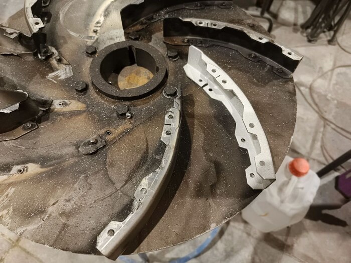 Часть лопастей загнуло, одну ваще вырвало и выкинуло. Короче, отсверлил одну, наиболее целостную и отпечосил её, чтобы не пачкаться. Окей. Следующий этап - курение апокрифов и моделирование в САПР: