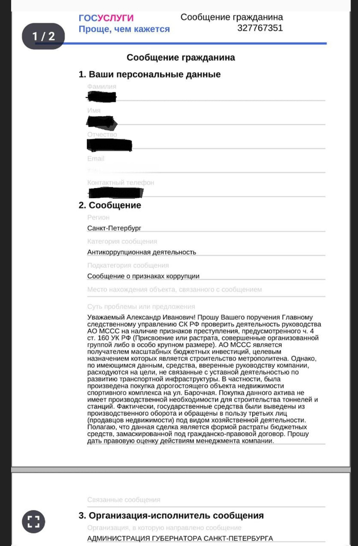 Ни «проведена проверка». Ни «взято на особый контроль». Просто «мы переслали в Петербург».