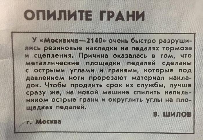 Специально для Москвича-2140 SL были разработаны оригинальные шины, которые потом по наследству достались всему семейству 2140.