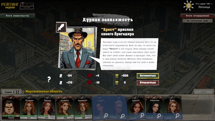 Полтора года назад я захотел сделать игру о непростой жизни главного редактора местечковой газеты в лихие девяностые. Место действия игры вымышленное, но очень напоминает республики постсоветского пространства. Игра представляет собой несложную стратегию где вы пытаетесь во первых выжить, а во вторых сделать свою газету ведущим печатным изданием страны. Хорошо подойдет для начитанных и умных людей. Пока игра работает прямо в браузере без платы и рекламы.