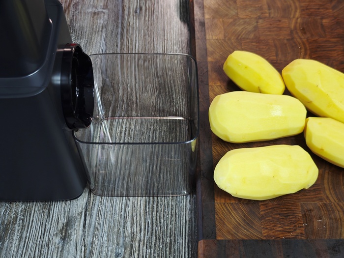 С картофелем нет проблем. Будь то необходимость перетереть для драников или же сделать мелкие ломтики для чипсов.