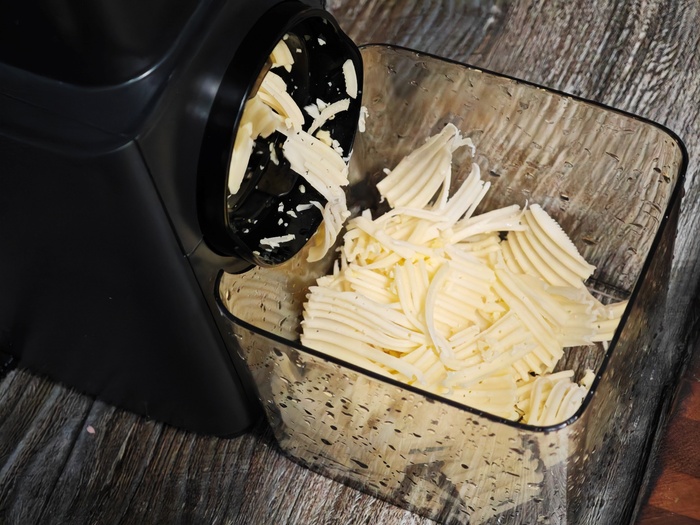 Шинковка умеет нарезать сыр фигурным способом. Получается вот так (фигурный и простой способы).