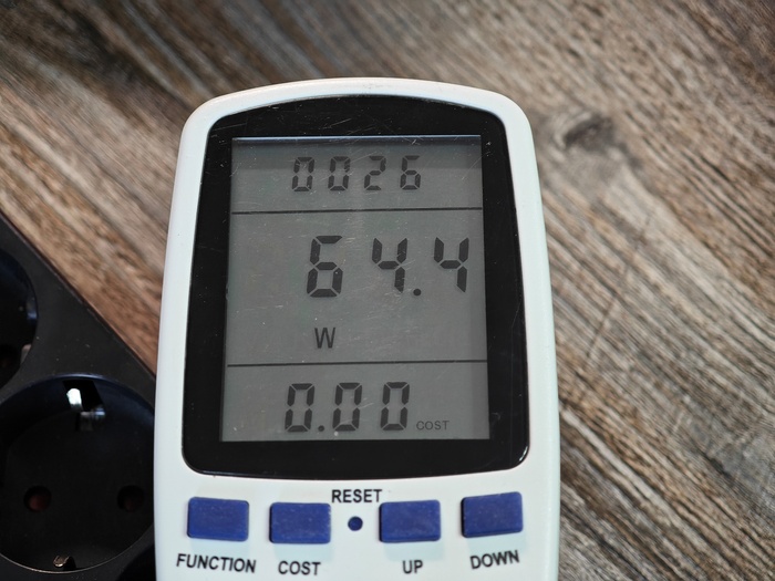 Потребление на "первой" скорости около 60 Вт, на второй до 120 Вт.