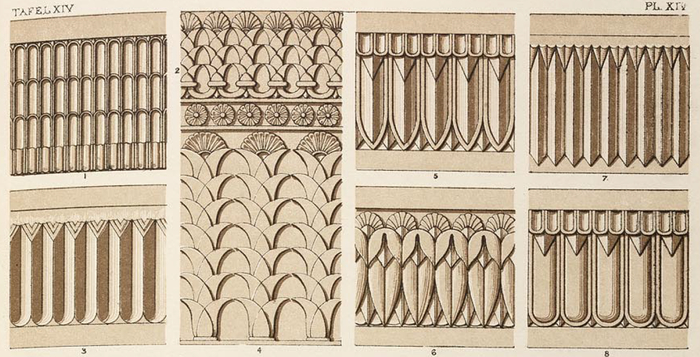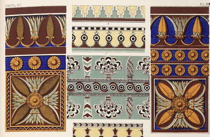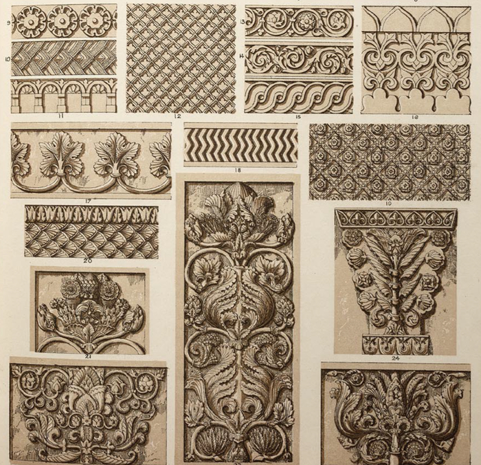 "Очень трудно, даже почти невозможно, подробно объяснить словами различия в стиле орнамента, имеющего столь сильное сходство с персидским, арабским и турецким; тем не менее, глаз легко их замечает, подобно тому как римскую статую отличают от греческой. При сохранении общих принципов персидского, арабского и турецкого стилей орнамента проявляется особенность пропорций масс, большая или меньшая изящность плавных линий, склонность к определенным направлениям в линиях и своеобразный способ переплетения форм, при этом общая форма условного орнамента остается неизменной. Относительная степень вычурности, деликатности или грубости, с которой они выполнены, сразу же позволяет отличить их от работ утонченного и духовного перса, не менее утонченного, но вдумчивого араба или неизобретательного турка."