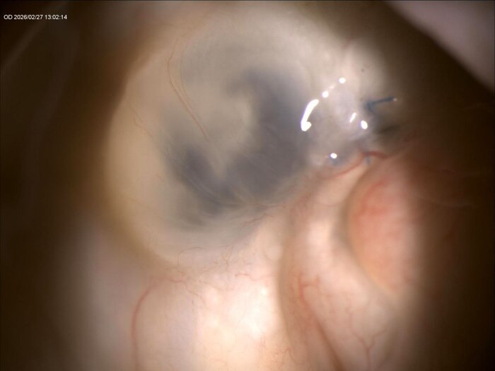 Множественные осколочные ранения роговицы и конъюнктивы обоих глаз. Травма получена в зоне проведения СВО. Автомобиль подорвался на мине и водителю осколками ветрового стекла посекло глаза. Полное удаление практически невозможно, многие глубоко в слоях роговицы, извлекаю лишь те из них, которые "прорезались" наружу, либо близки к этому.
