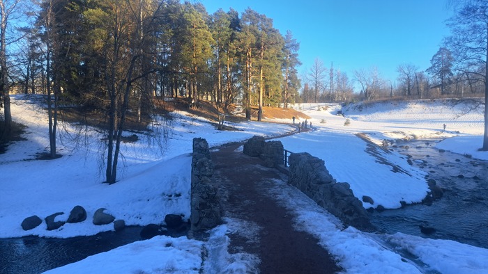 Прогулка по еще снежному(7 марта) парку. Фото почти без дворцов, по большей части природу старался захватить. Один из любимых парков. Возможно еще и тем, что удачная планировка парка очень сильно напоминает терренкуры Кисловодска, с их специально размеченными маршрутами с дозированными подъемами и спусками. Удачно использованные перепады небольших высот создают ощущение, что ты все время куда то поднимаешься.