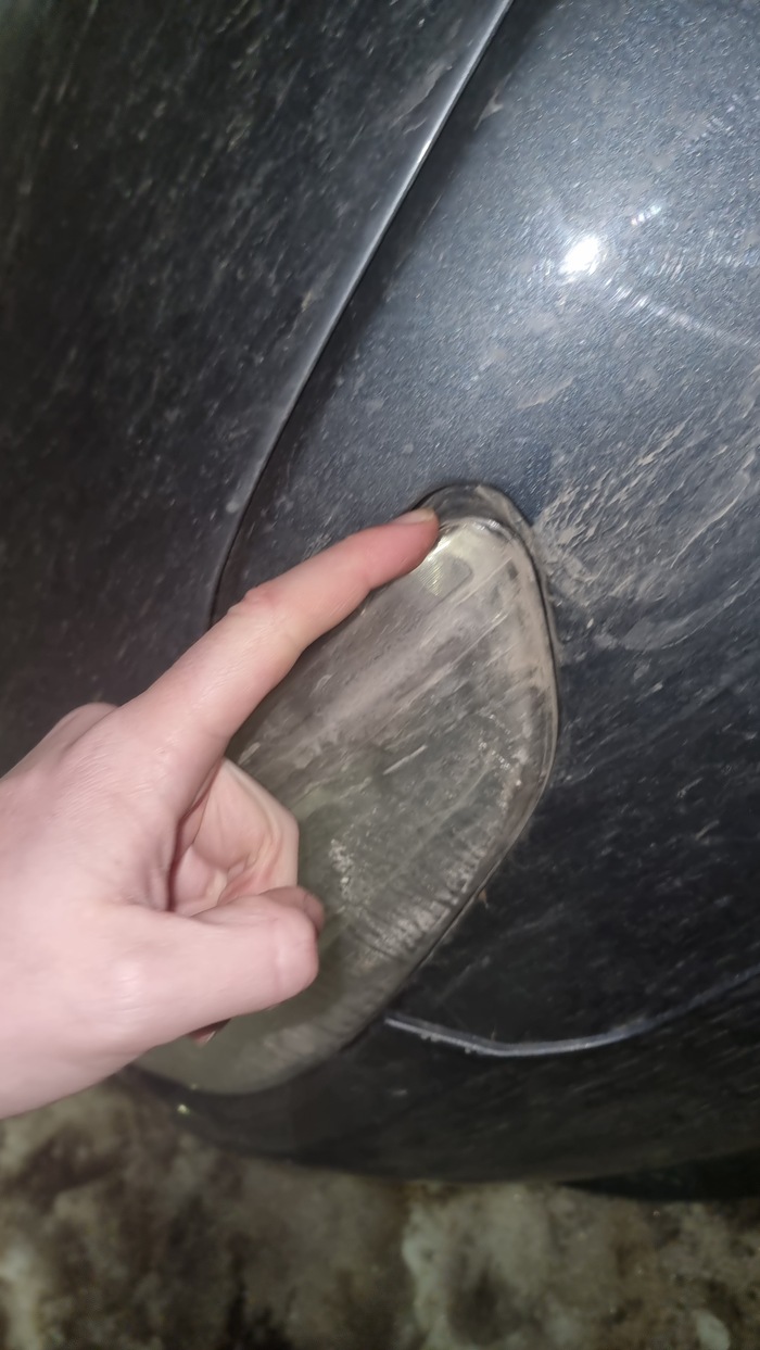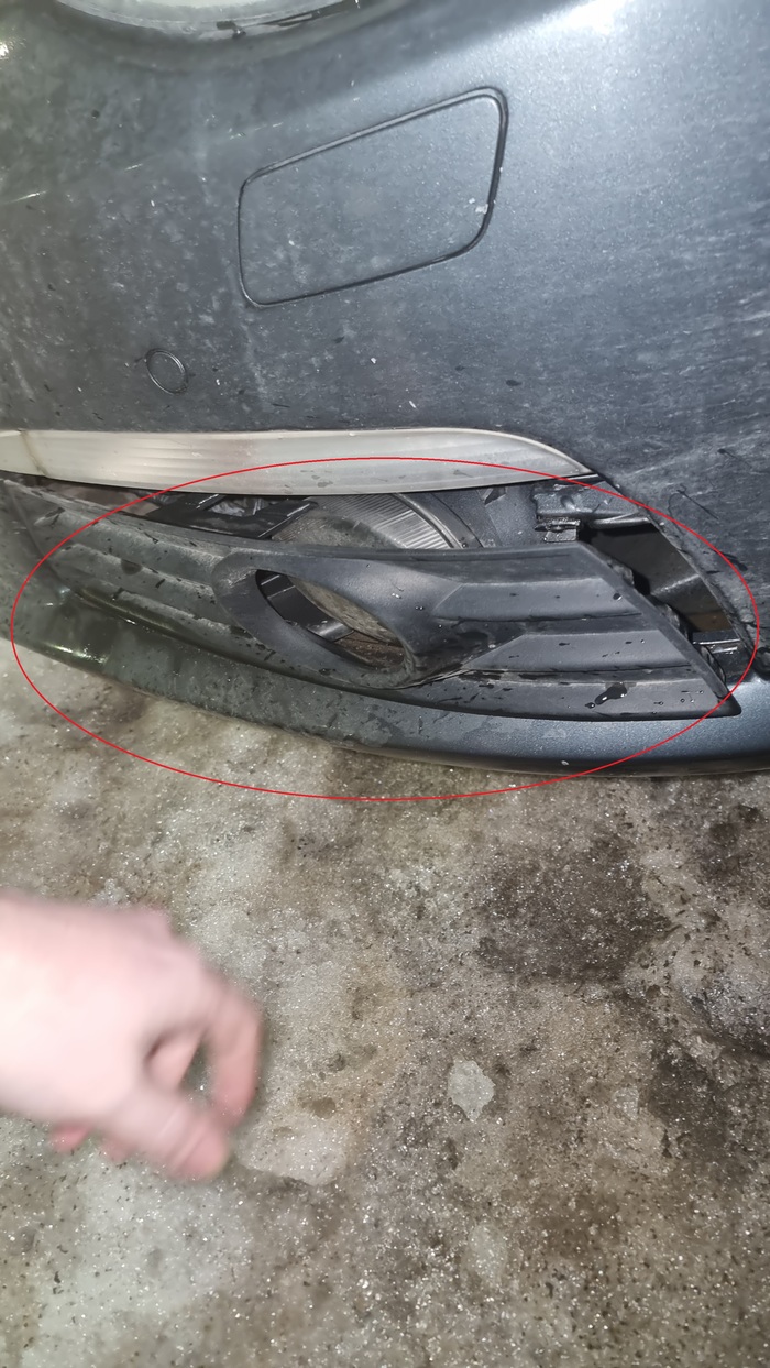 Бампер был закреплён! Саморезом! И естественно вот такие последствия на заднем крыле: