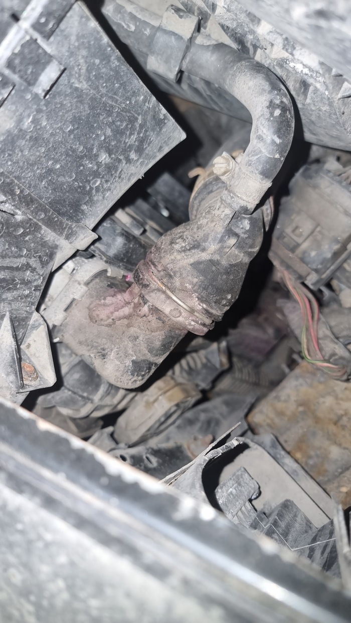 Патрубок антифриза потихоньку кап-кап, ждёт своего часа.