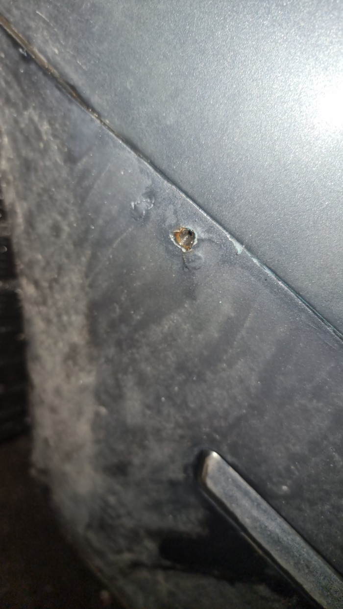 Всё сгнило за год, после покраски (по крайней мере по утверждению продавца) саморез естественно тоже сгнил и выпал. Вы потом офигеете, когда я вам скажу сколько взяли за такую "покраску" авто. Ну то есть заднему крылу к*бзда, нужно резать-варить и прочее.