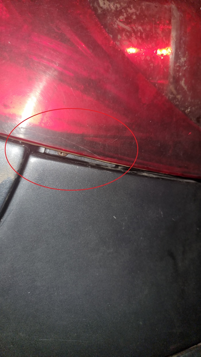 Запотевшие, треснутые в некоторых местах. Царапины на крышке багажника.
