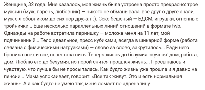 Специально подчеркну- оба пункта сразу, а не один из двух. Ибо только секс у меня и так уже ведь есть в борделе.