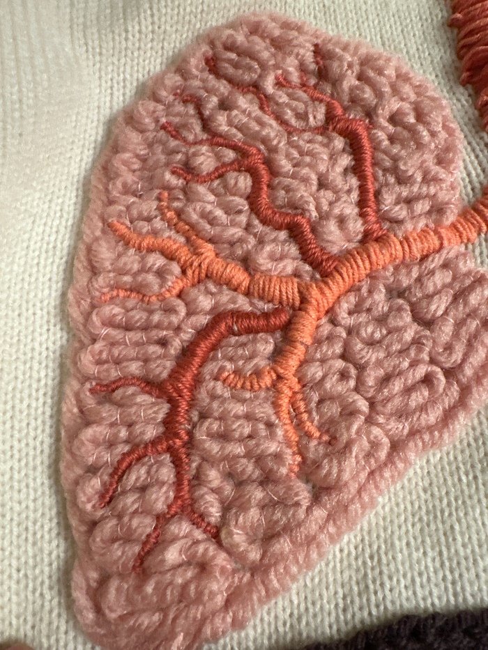 В этот раз договорились вышивать на свитере, и так мне кажется, выглядит органичнее, чем на гладком свитшоте. (Ниже есть 2 моих поста тоже с органами).