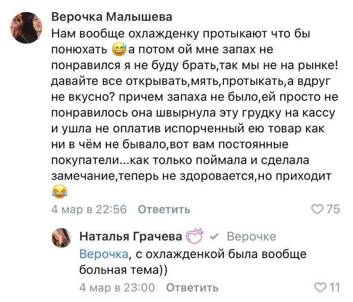 «Нам вообще охлажденку протыкают, чтобы понюхать»