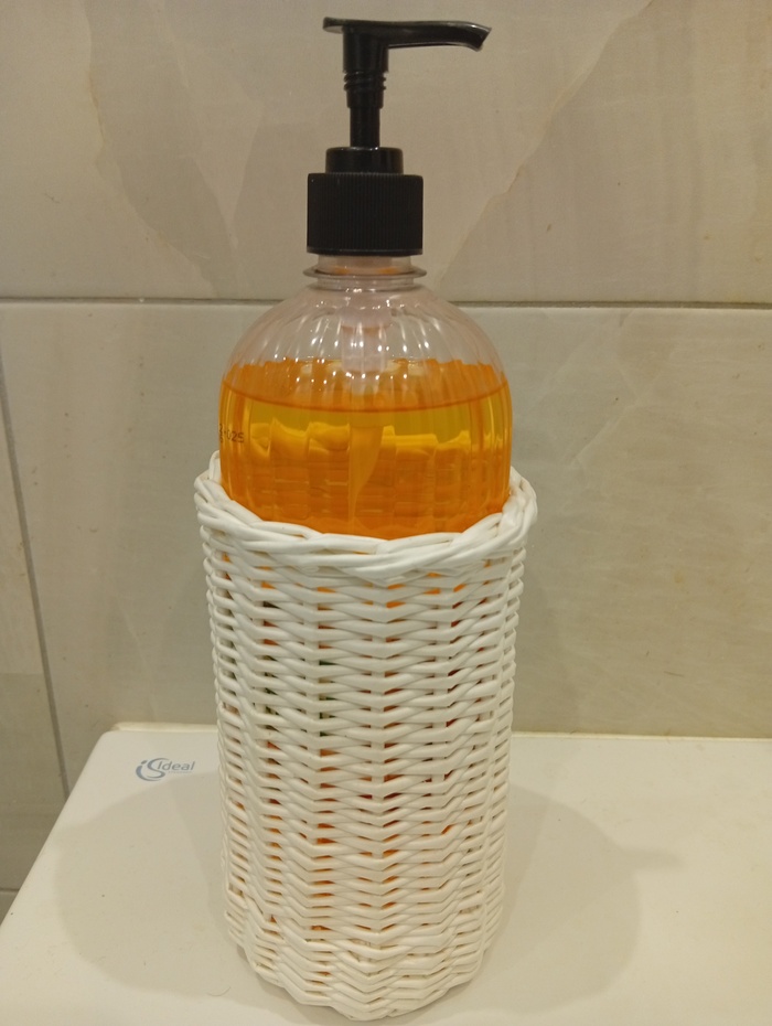 Вчера купил жидкое мыло. Сегодня обнаружил в ванной вот это рукоделие.