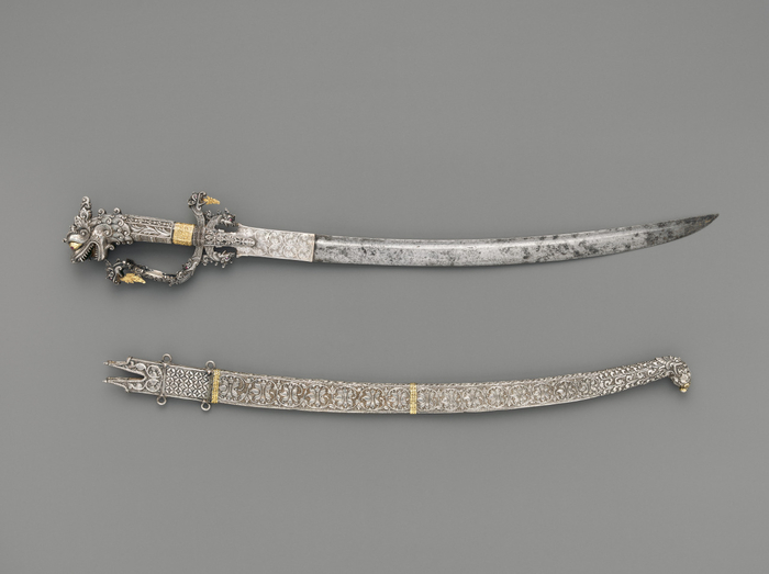 Оружие имеет изысканно детализированные ножны с рельефным орнаментом в технике чеканки и гравировки, а также украшенную драгоценными камнями рукоять, инкрустированную рубинами в золотых оправах.