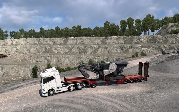 А вот заехать туда с грузом то еще испытание. Конкретно я пытался доставить туда мобильную дробилку (40 тонн) на длинном низкорамном прицепе. Проехать так, чтобы не зацепить трафик или не застрять на повороте, у меня не получилось. Здесь нужны прицепы покороче, возможно с гуськом, чтобы прицеп выравнивал. Получилось протащить груз только насильно, толкая свой низкорамник в бок о стены забора.
