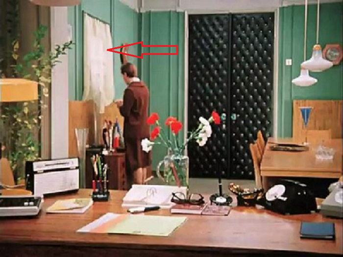 Изюминка кабинета суровой начальницы - выход на крышу, где у нее по-настоящему личный уголок для того, чтобы, например, поплакать после того, как любящие подчиненные обзовут как-нибудь нехорошо. Людмила Прокофьевна оживила этот своеобразный балкон большим количеством горшечных растений, а в одном кадре мелькает даже какое-то деревце в бочке, березка, что ли.