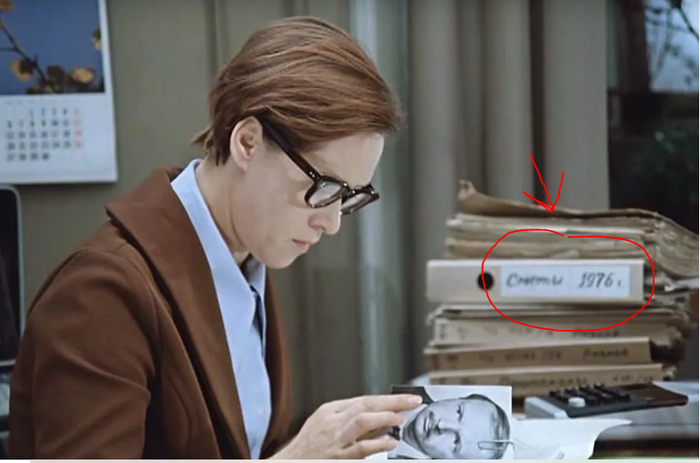 Многие считают за ляп тот факт, что на стене висит календарь за 1975 год, а именно открыт сентябрь, а на столе у Калугиной лежат сметы на 1976 год: