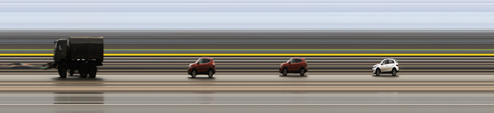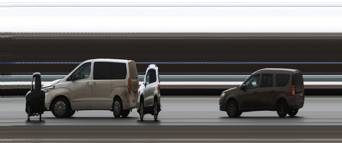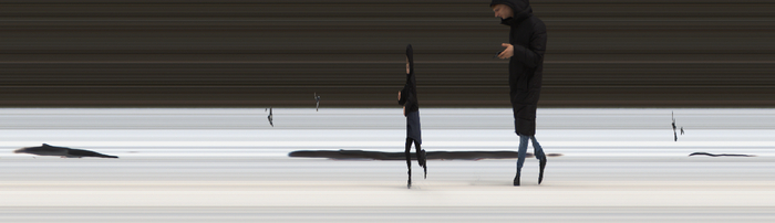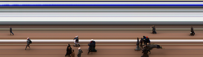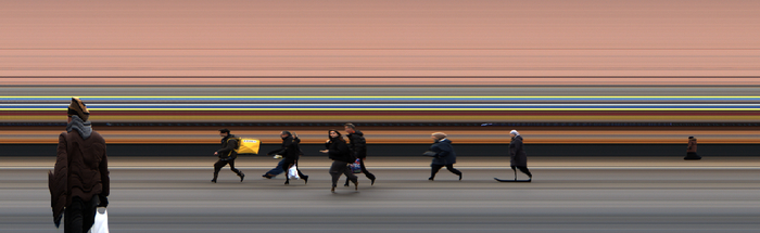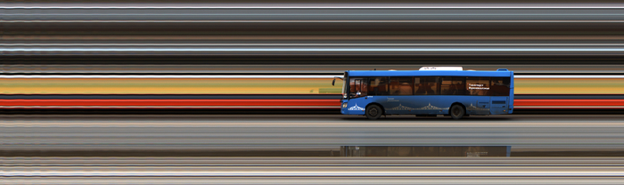 В этих кадрах нет фотошопа в привычном понимании. Это техника "slit-scan": каждый снимок склеен из тысяч вертикальных полосок, снятых в разное время.