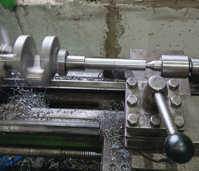 Вал точил из двух частей , т. к не было одной заготовки подходящей марки стали нужной длины. Одна половинка сталь 40хс , другая вроде ст45 . Посадка на горячую, натяг 2-3 сотки.