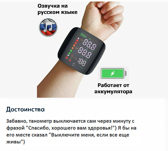В итоге после более-менее длительной эксплуатации девайса под названием Тонометр наручный автоматический выяснилось, что он все-таки иногда работает. В условиях моего нормального давления ( 160/90 ). А когда организм начинает бесоёбить (около 200/120), то его полномочия всё.