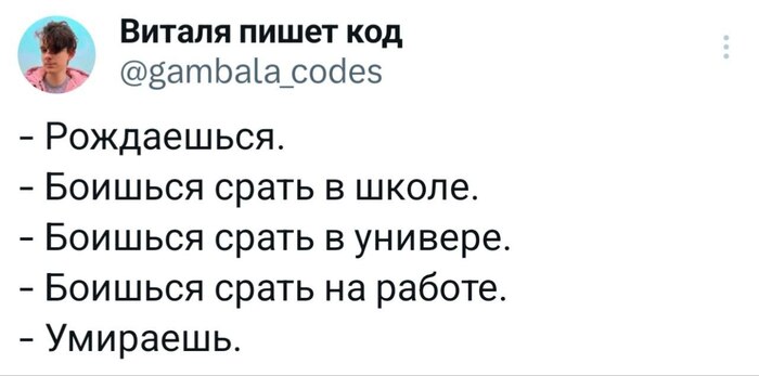 Это был вторник. Вторник, который начинался как обычный вторник, а закончился моим внесением в неофициальный список городских сумасшедших.Всё началось с урчания в животе. Это было не просто урчание, это был вой сирены терпящего бедствие корабля в бурном море кишечника. Я, будучи законопослушным гражданином и мужем, направился в единственное на нашей жилплощади убежище — туалет.Но как только моя рука легла на холодную дверную ручку, за спиной раздался голос, не терпящий возражений:— А ну стоять. Я первая.Я обернулся и увидел жену. В её руке была огромная кисть для макияжа, а в глазах горел огонь, с которым не спорят. Огонь этот назывался «Я только что сделала идеальные стрелки, и если ты сейчас сядешь на унитаз, гравитация испортит всю мою работу».— Дорогая, это не терпит, — простонал я, переминаясь с ноги на ногу.— А мои стрелки терпят? — парировала она, заходя в туалет и закрывая перед моим носом дверь. Лязгнул засов. Похоронный марш для моего кишечника.Я метался по коридору, как тигр в клетке, только тигр обычно хочет мяса, а я хотел облегчения. И тут мой взгляд упал на мусорное ведро. В нём, на самом верху, лежал пустой пакет из-под продуктов. Чёрный, блестящий, с ручками. Он манил меня, как спасательный круг.— Ну уж нет, — сказал я вслух, хватая пакет. — Человеческая изобретательность не знает границ. И уж тем более их не знает мой кишечник.Я забежал в спальню. Чувствуя себя последним извращенцем и первопроходцем одновременно, я совершил задуманное в этот пакет. Это был момент интимной близости с самим собой и с законами физики, которые я только что грубо нарушил. Пакет, наполнившись, стал тяжёлым и тёплым. Я завязал его на узел. Получился своеобразный чёрный кокон, хранящий мою тайну.И в этот момент из ванной вышла жена. Её стрелки сияли, как два лазерных луча. Она посмотрела на меня, потом на мои руки, в которых болтался подозрительный кулек.— Ты… ты серьёзно? — спросила она с ужасом и восхищением в голосе.— А что мне оставалось? — огрызнулся я, потрясая пакетом. — Ты лишила меня моего законного права!Вместо извинений, на её лице расцвела странная, зловещая улыбка. Это была улыбка человека, который только что нашёл идеальное решение всех проблем.— Ну раз ты такой хозяйственный, — сказала она сладким голосом. — Вынеси мусор.Она схватила с кухни полное ведро и, прежде чем я успел среагировать, ловким движением вытряхнула его содержимое прямо мне в пакет! Огрызки яблок, чайные пакетики, картофельные очистки — всё это смешалось с моим «личным делом».— Ты с ума сошла?! — заорал я, глядя на этот коктейль.— Иди выбрасывай, — она указала на дверь. — И не смей открывать пакет, провоняешь всю квартиру.Я вылетел на улицу, сжимая в руке это вонючее недоразумение. Меня душила обида и чувство абсолютной несправедливости бытия. Я шёл к мусорным бакам, сжимая пакет так, будто это была граната, а не компостная куча.И тут, на углу, я увидел их. Компанию подозрительно гламурных личностей. Они стояли и курили, стряхивая пепел прямо на асфальт, и громко обсуждали, как им кто-то там испортил настроение своим непрофессионализмом. Они были вылизаны, пахли дорогим парфюмом и смотрели на всех свысока.Внутри меня что-то щёлкнуло. Нет, это был не разум. Это был мой кишечник, который решил взять реванш за унижение.В голове промелькнула мысль: «Они такие же, как моя жена. И