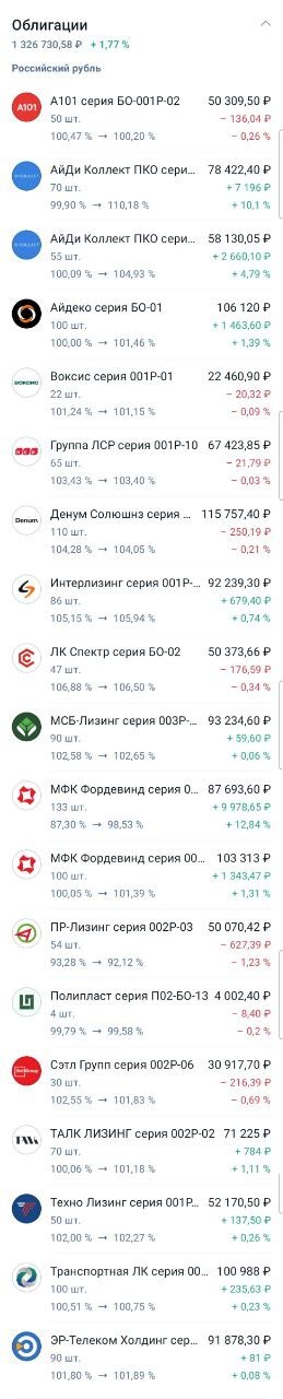 2. Взял слишком большую позицию на первичном размещении по бумагам СФО РЛО-2 надеясь на быстрый апсайд, но произошла история, похожая на С-Принт. Оригинатор СФО РЛО-2 (Мосрегионлифт) очень быстро ушел в техдефолт, пришлось часть позиции продать в убыток, хотя продолжаю бумаги СФО РЛО-2 держать в портфеле на разумную долю.