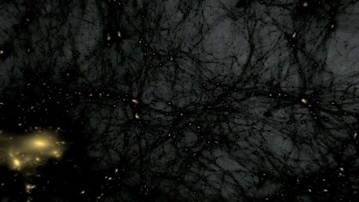 - по крупномасштабной структуре космоса, которая выглядит так, будто кто-то создал невидимый каркас, а галактики легли на него, как роса на паутину.