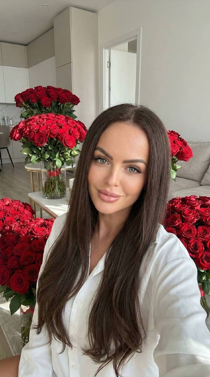 Пропорции фото 9:16, вертикальный кадр. Фотореалистичный кадр с сохранением личности человека c личного фото (референс лица). Сохранить 100% узнаваемость: черты лица, возраст, пол, тон кожи, прическа, брови, форма носа, губ, глаз, челюсти, цвет волос. Без эффекта пластика, высокая детализация кожи, волос. Девушка с длинными волосами. Фотореалистичная fashion бизнес фотосессия ко дню рождения, премиальная обработка как в серии студийных фото: чистая кожа с микротекстурой, естественный контраст, мягкая ретушь без пластика, дорогая цветокоррекция, ощущение журнальной съемки. Сцена: светлые современные апартаменты, большая светлая комната, мягкий дневной свет из окна, теплые бежево кремовые оттенки интерьера, уютная атмосфера. В кадре 1 человек. Героиня: ухоженные длинные волосы, аккуратная укладка, естественный макияж, свежий здоровый тон кожи. Одежда: белая рубашка на голое тело, слегка расслабленная посадка, стиль business chic. Композиция: портрет по пояс или почти в полный рост, девушка стоит или сидит среди огромного количества плотных букетов красных роз, букеты крупные и объемные, окружают ее со всех сторон, часть букетов на полу, часть на столе и диване, ощущение что комната заполнена розами. Розы насыщенно красные, лепестки детализированы, зелень свежая. Поза и эмоции: девушка смотрит прямо в камеру, добрый благодарный взгляд, легкая теплая улыбка, ощущение праздника и благодарности. Поза спокойная, уверенная, без напряжения. Свет и камера: мягкий естественный свет, легкое свечение на волосах, аккуратные тени, высокая детализация, реалистичная глубина резкости, фон немного размыт, акцент на лице и розах. Без водяных знаков, без логотипов, без лишних надписей.
