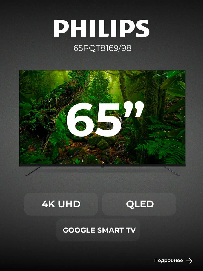 №10 — Philips 65PQT8169/98 QLED — 59 252 ₽ ⭐ 4.8 (64 оценки · 155 купили)