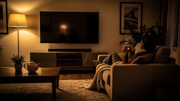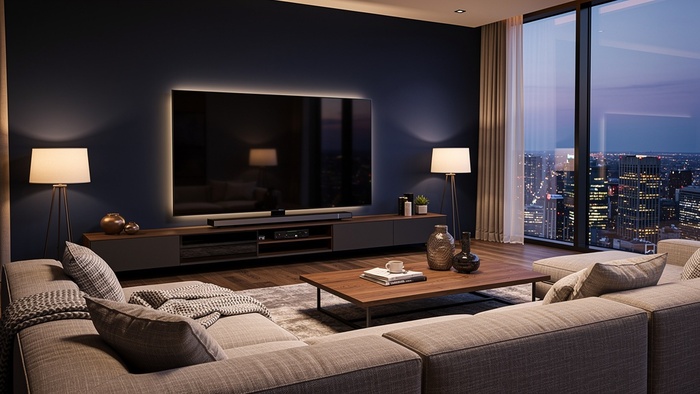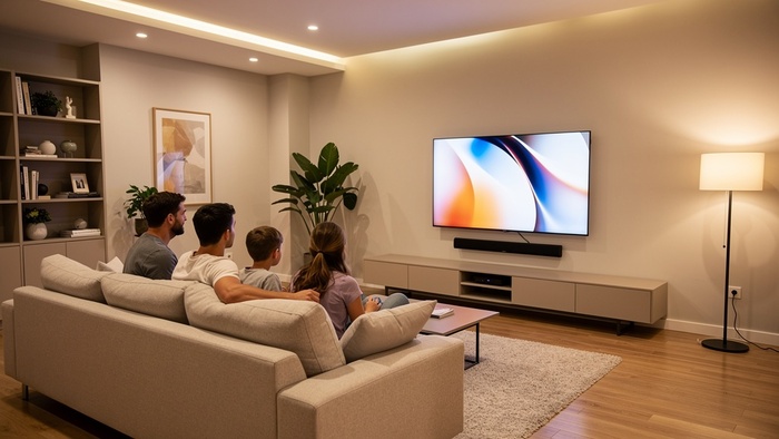 Оптимальное расстояние просмотра — от 2,5 до 4 метров. Если ваша гостиная позволяет — смело берите 65". Это уже совсем другое ощущение от кино, сериалов и игр по сравнению с 55". При просмотре с 3 метров разница с 55-дюймовым моделью просто огромная.