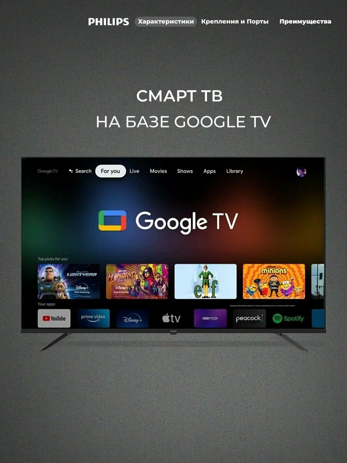 Philips — это не китайский ноунейм. Качество сборки выше среднего по рынку, цветопередача аккуратная. 4K UHD, хороший звук — бренд исторически уделяет звуку внимание. 155 купили с рейтингом 4.8 — стабильно и надёжно.