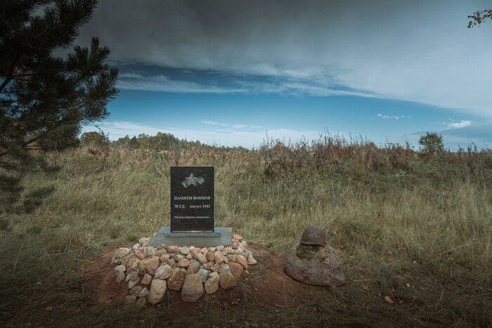 Среди опустелого, боле неодушевлённого поля, оживающего каждую весну лишь по зову природы, а не по прихоти людей желающих возделывать его ради хлеба и жизни стоит памятный знак тем, кто погиб здесь в августе 1943 года.