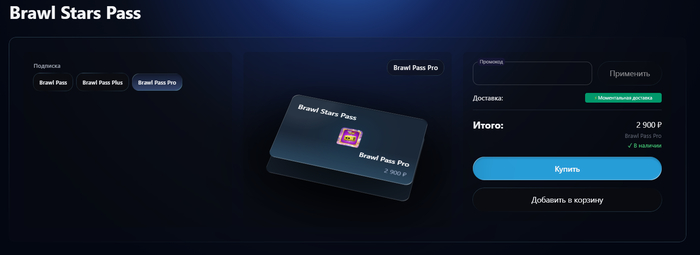 После этого перейдите на одну из платформ с цифровыми товарами и найдите предложение по покупке Brawl Pass.
