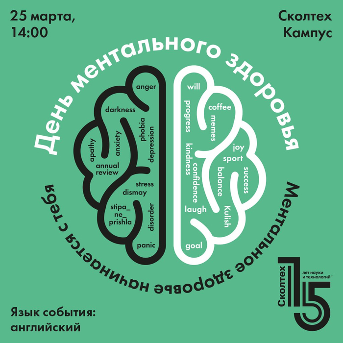 ☁️ 25 марта в Сколтехе пройдёт День ментального здоровья (https://u.to/c_V2Ig). На встрече найдём научные объяснения нашим сложным чувствам и узнаем, как работает наш мозг.