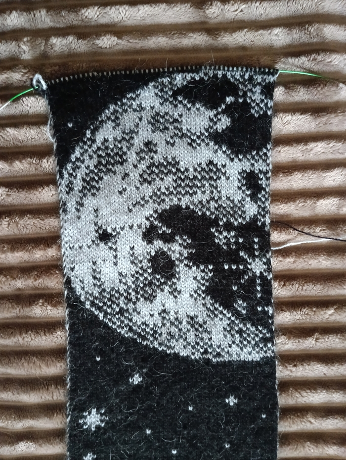 Как же я настрадался высчитывая и вывязывая все эти мелкие точечки, чтобы получить красивую Луну... Но ведь это стоило того! Она получилась просто шикарная, хоть и, пожалуй, это был самый сложный рисунок, который я вязал двусторонним жаккардом.