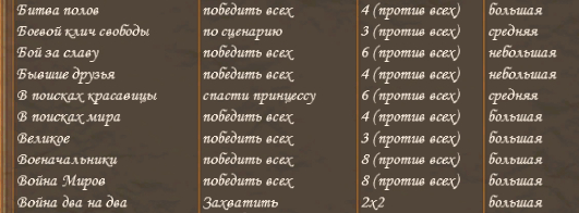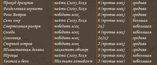 Поэтому предлагайте любые из этих карт сценариев, с любыми вариантами противников (любые расы и Герои).