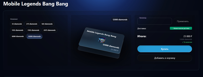 большой выбор предложений для Mobile Legends донат