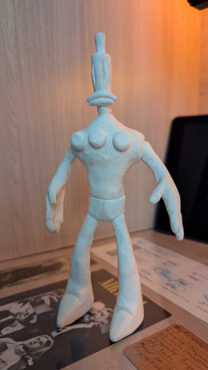 В школе я проходил эту игру на ПК. Часть загадок были отличные, часть — такие, что хотелось проверить, не издеваются ли над тобой. Продалась игра слабо, хотя отзывы были хорошие, и в этом есть какая-то логика: проект слишком необычный, чтобы стать массовым. Фигурку я сделал из полимерной глины — получился пластилиновый персонаж, снова слепленный вручную. Круг замкнулся.