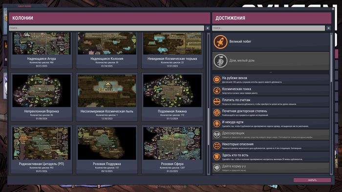 Итак, 10 сентября 2025-го года я решил для себя добить таки "Незадыхайку" (так на жаргоне называется Oxygen Not Included), научиться сжижать водород с кислородом, сделать водородную ракету и получить первую основную ачивку. Постройка великого монумента или максимально комфортной базы меня никогда так не интересовали, как космос и ракетостроение. Но к ним я еще вернусь в будущем, а пока надо отдохнуть, ибо спустя почти полгода практически безвылазной игры (я буквально ходил в нее как на работу), а именно 1 марта 2026 заветная ачивка наконец получена.