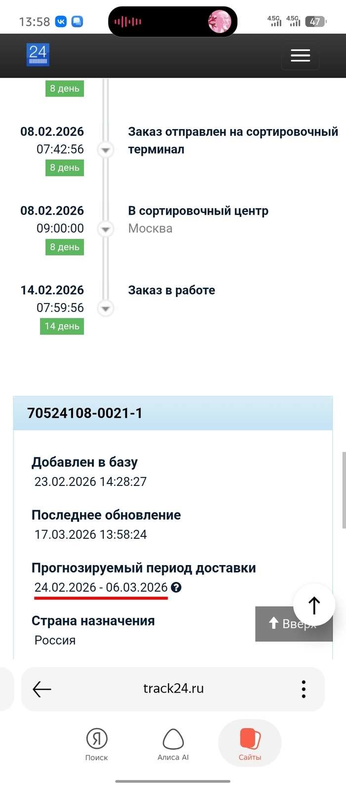 Заказал телефон 1 февраля, сейчас 17 марта...