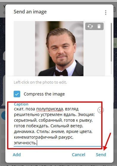В тексте промта подробно описываем важные элементы сцены: внешний вид, одежду, позу, эмоции. Например:
