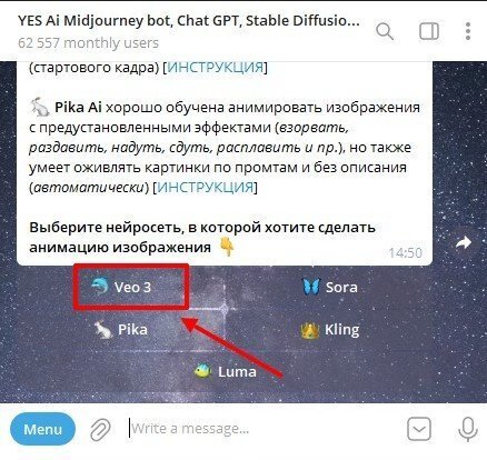 Важный момент: если хочется работать с русским языком, стоит запускать Veo 3 через Yes Ai Bot. Через этот бот нейросеть отлично воспринимает русские промты и реплики. При запуске через Google Flow придется использовать только английский язык — русский она просто не понимает.